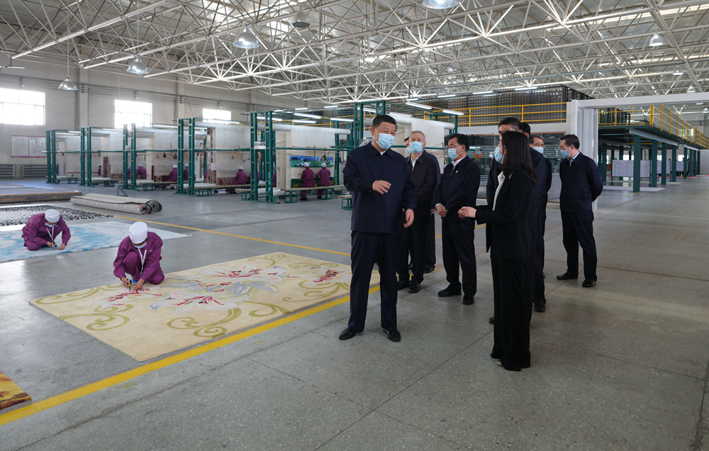 7日下午,習近平總書記來到青海聖源地毯集團有限公司,走進生產車間、設計部門察看產品生產、設計情況。習近平表示,藏毯是一種特色產業,你們很好把傳統工藝和現代工藝結合在一起,契合了個性化、多樣化的市場需求。藏毯產業是符合青海實際的產業,有扶貧致富、推進鄉村振興的作用,還有促進民族團結的作用。習近平希望青海發展更多這樣的特色產業,靠創新實現更好發展。