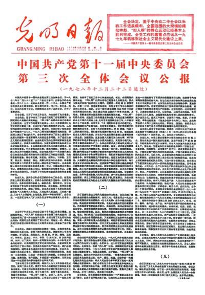 3天后,党的十一届三中全会召开。会议宣告:“只有全党同志和全国人民在马列主义、毛泽东思想的指导下,解放思想,努力研究新情况新事物新问题,坚持实事求是、一切从实际出发、理论联系实际的原则,我们党才能顺利地实现工作中心的转变,才能正确解决实现四个现代化的具体道路、方针、方法和措施,正确改革同生产力迅速发展不相适应的生产关系和上层建筑。”