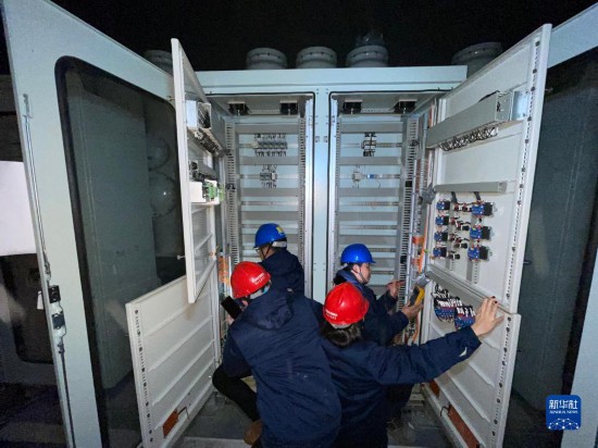 “韩舒技师创新工作室”团队在一处突发照明电源失电现场抢修(2月12日手机拍摄)。新华社发