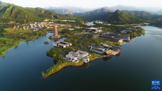 “一带一路”国际合作高峰论坛于2017年5月14日至15日在北京举行,怀柔雁栖湖国际会议中心是此次高峰论坛的主会场。这是雁栖湖(2017年5月6日摄,无人机照片)。新华社记者 李鑫 摄