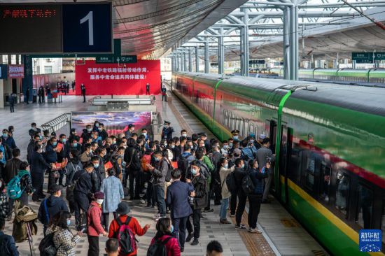 12月3日,乘客在中国昆明站准备搭乘中老铁路首发列车。新华社记者 胡超 摄