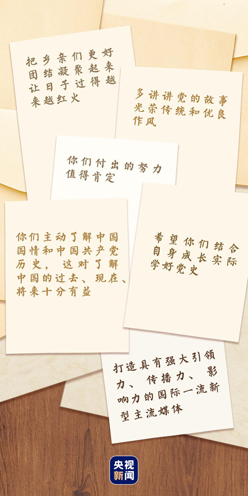 和乡亲们聊革命老歌、勉励考古工作者“继续探索未知、揭示本源”、充分肯定《文史哲》创刊70年来几代编辑人员付出的努力、鼓励外籍青年“多到中国各地走走看看”……2021年,习近平总书记写下了一封封回信、贺信。